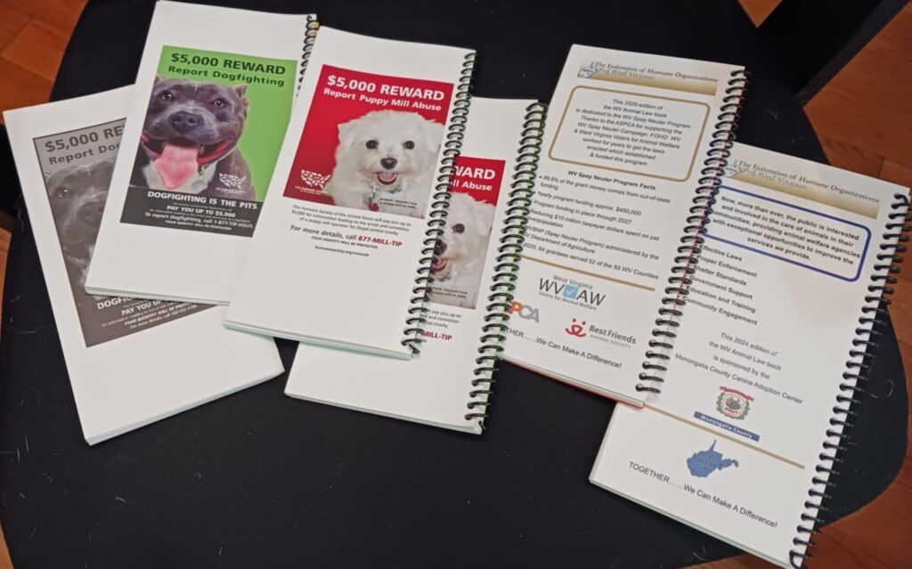 We are so grateful to The Monongalia County Canine Adoption Center for sponsoring the printing of 300 copies of the 2024 WV Animal Law Book. We no longer have national groups offering to sponsor our printing so we were so fortunate to have one of our local supporters like Dana Johnson and her team of dog wardens offering to do this. If you know of another group who may be interested in sponsoring additional copies of these books when we need them reprinted, please let us know.